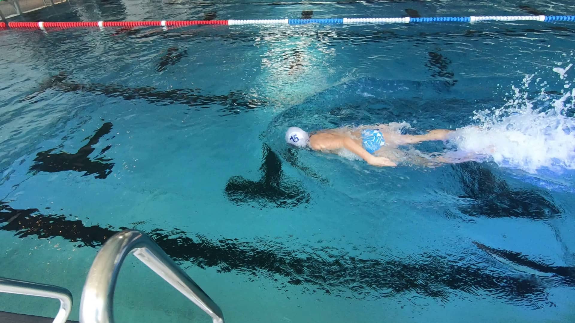 Description: During freestyle swimming, one arm stays by the body while the other completes a full arm stroke.