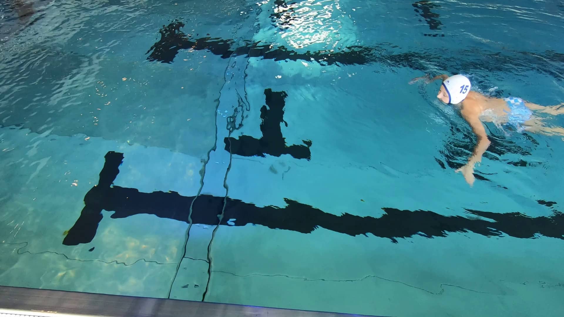 Description: Elbows stay at the water surface while the forearms press the water left and right.